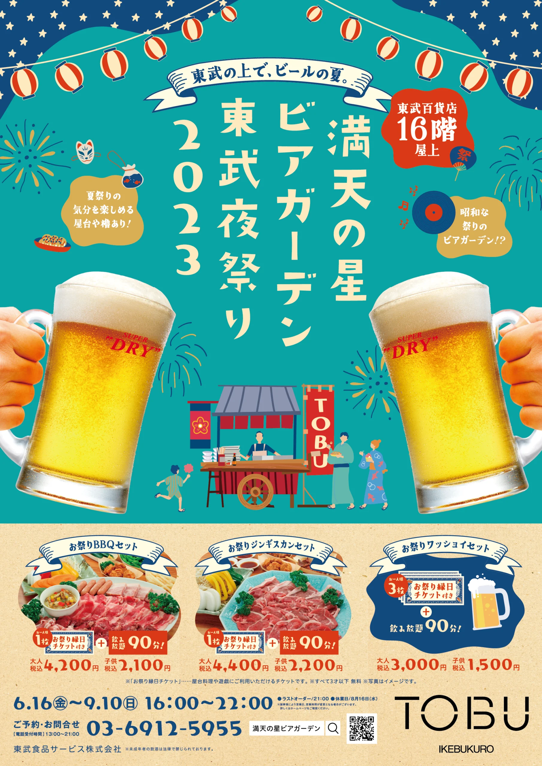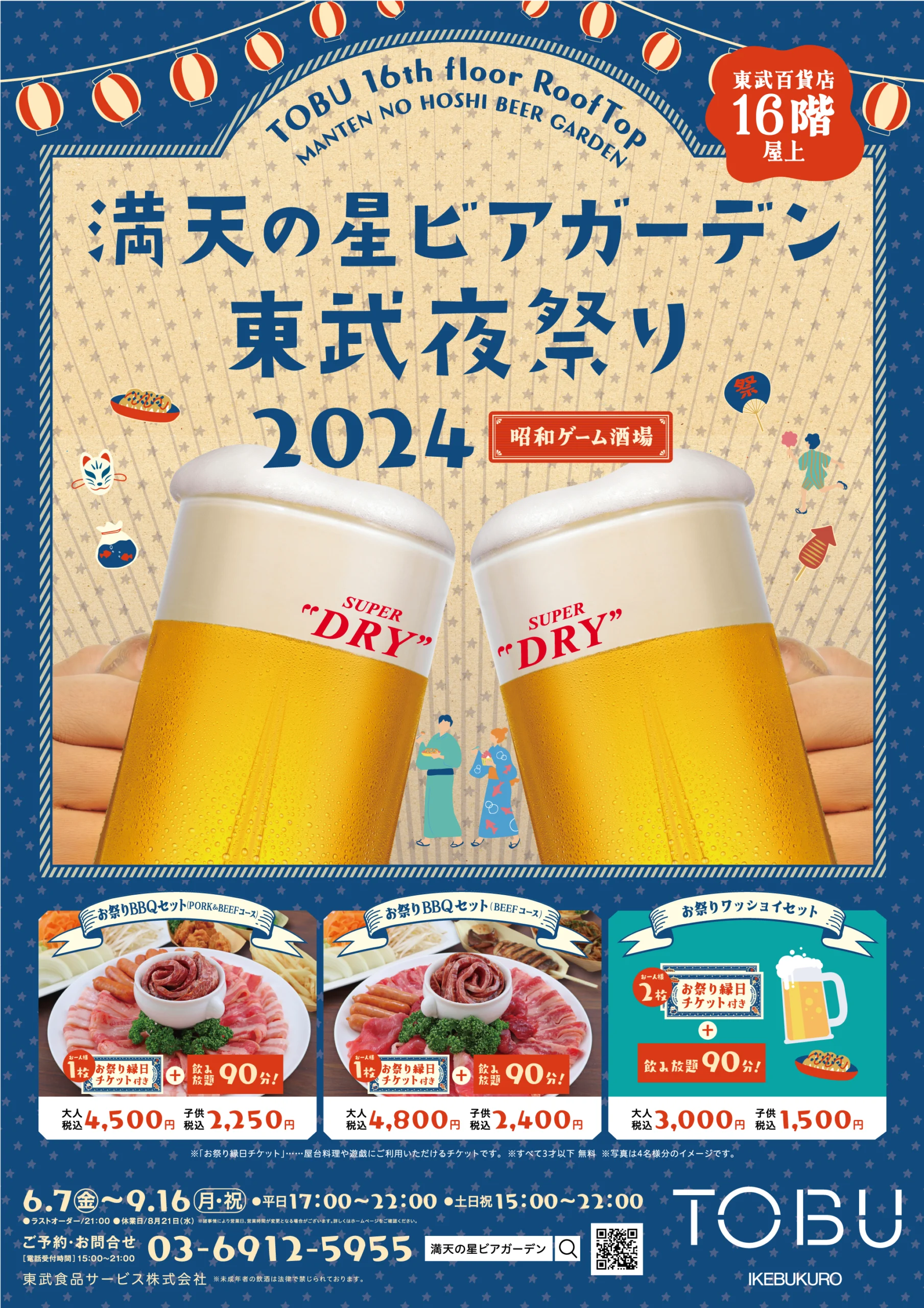 2020年より毎年ご依頼いただいている、ビアガーデンのポスターです。ここ数年は昭和レトロな企画が続いているので、それに合わせ少し懐かしさを感じるようなデザインにしています。